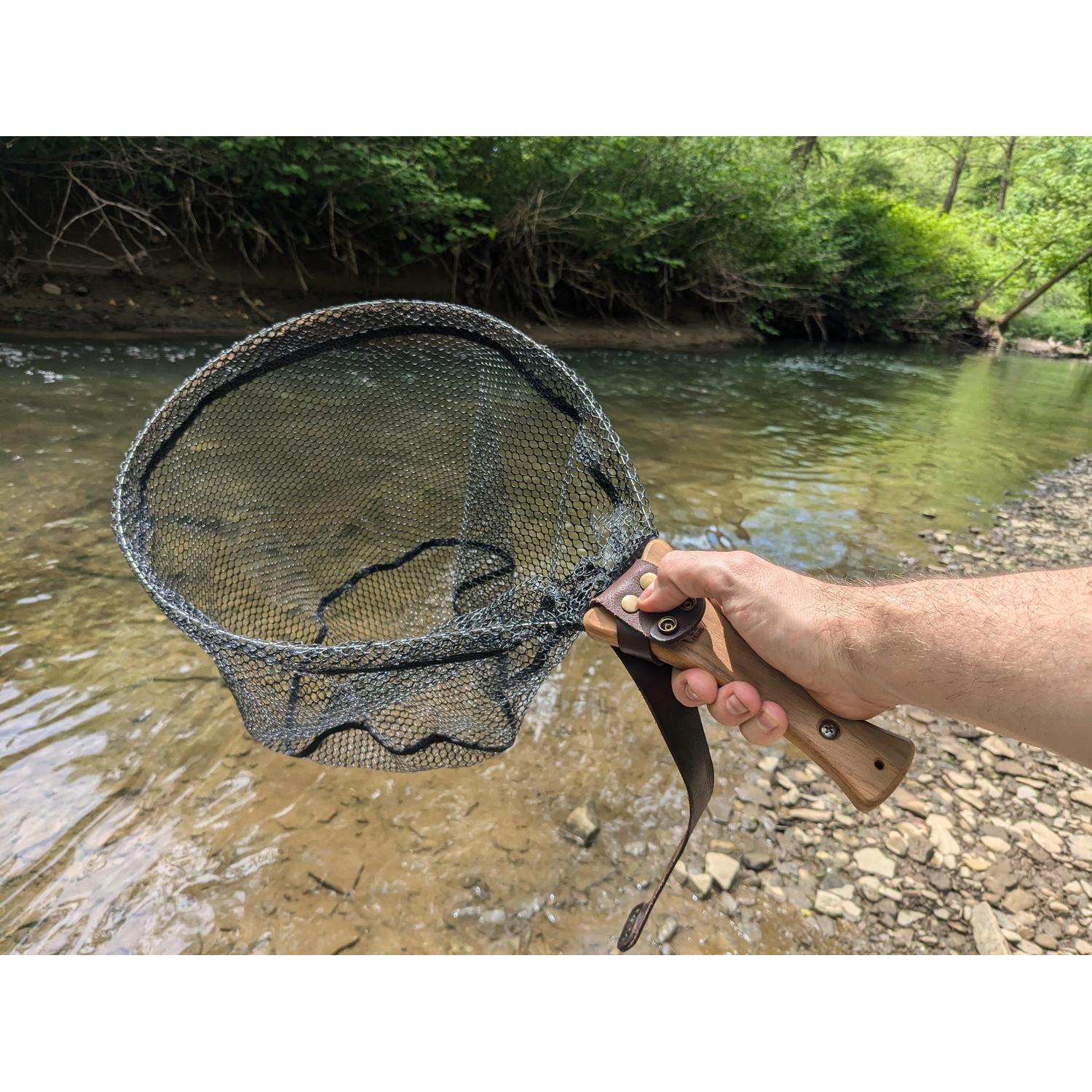 The Collapsible Fishing Net by Daggerfish unfolds instantly into a full-size landing net and collapses down small enough to carry on your belt or in your pack. Designed with a teak handle, knotless rubber netting, and stainless spring steel frame, it’s the perfect minimalist net for backcountry fishing and handlining.