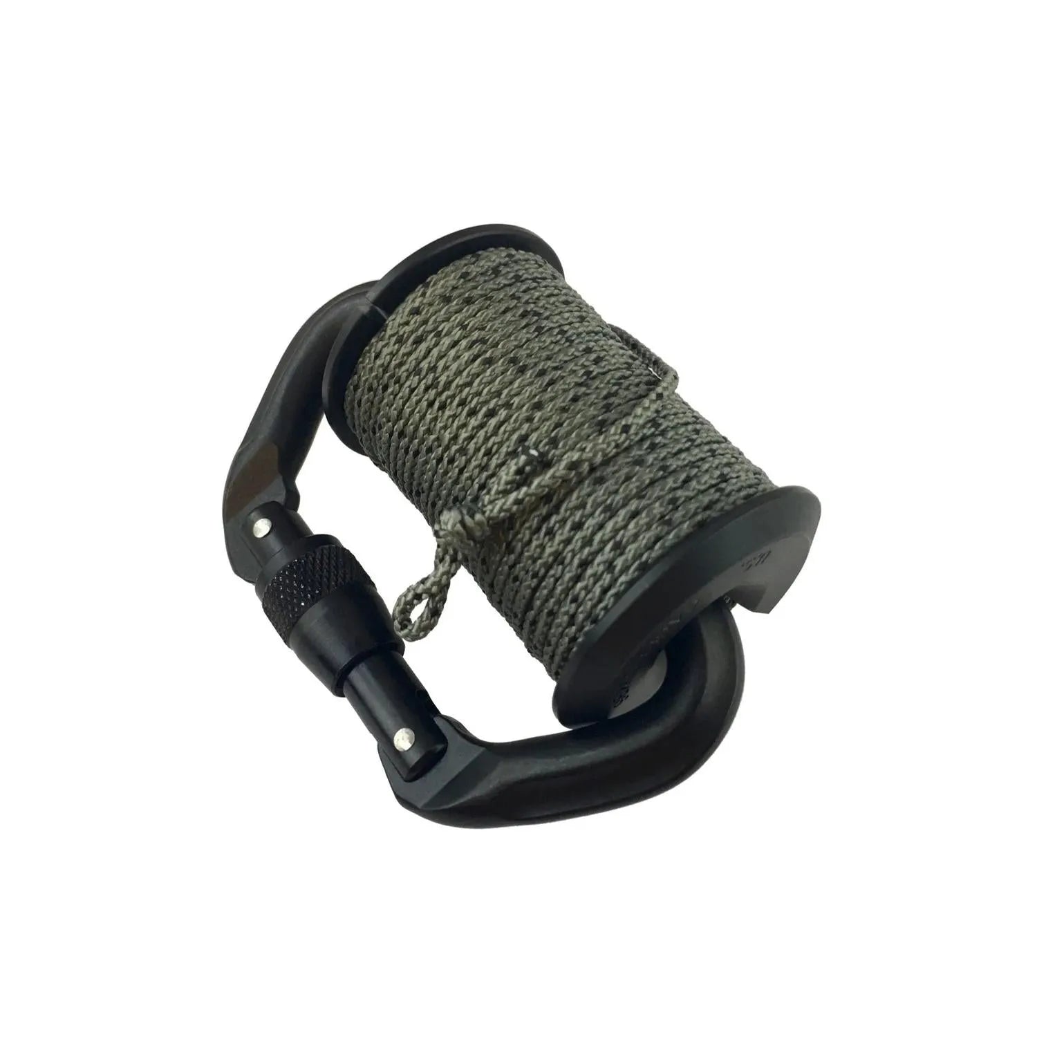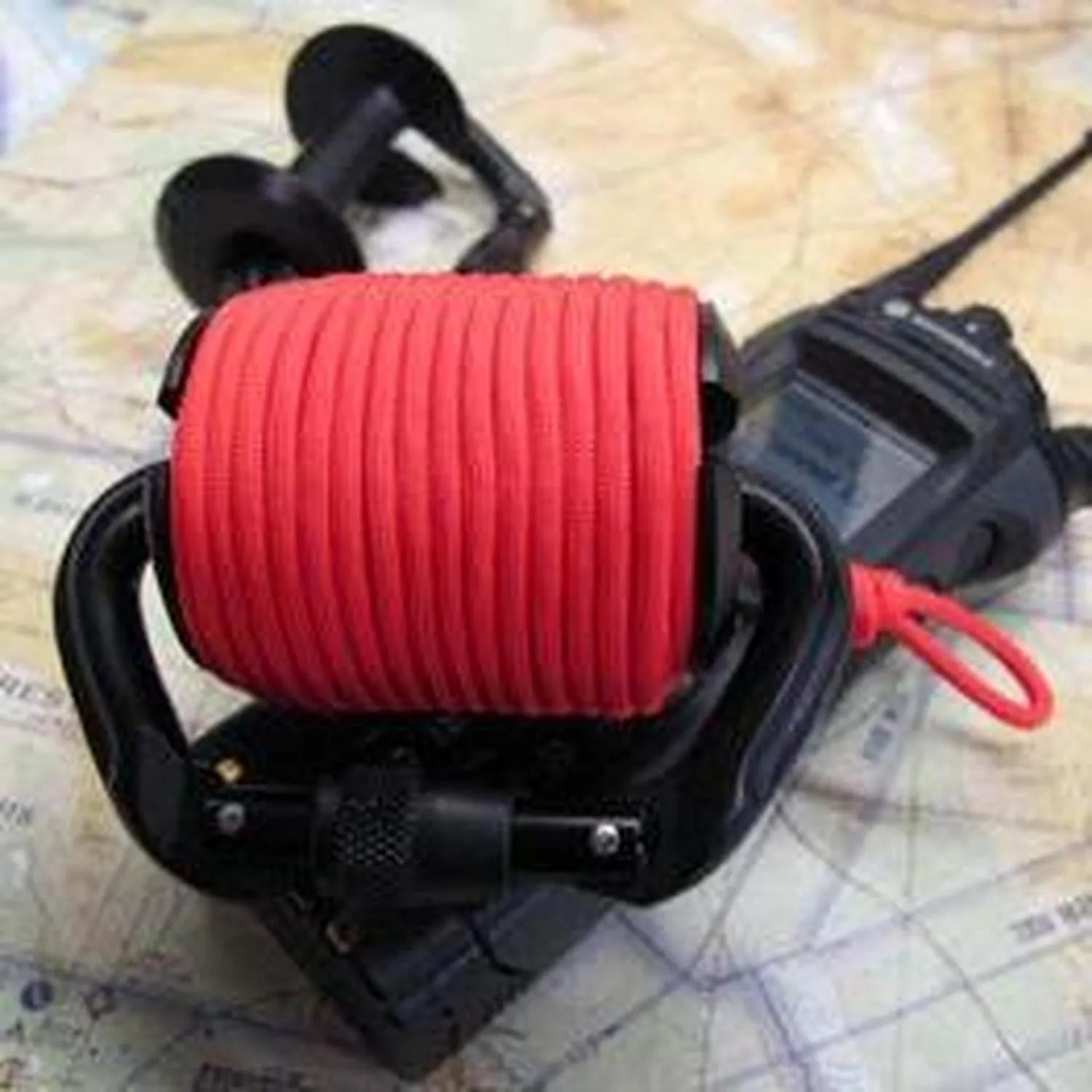 • Durable Delrin® Cord Reel: Holds ~50 ft of Paracord or 100 ft of 3/32" tether cord with a built-in start/stop notch for control.