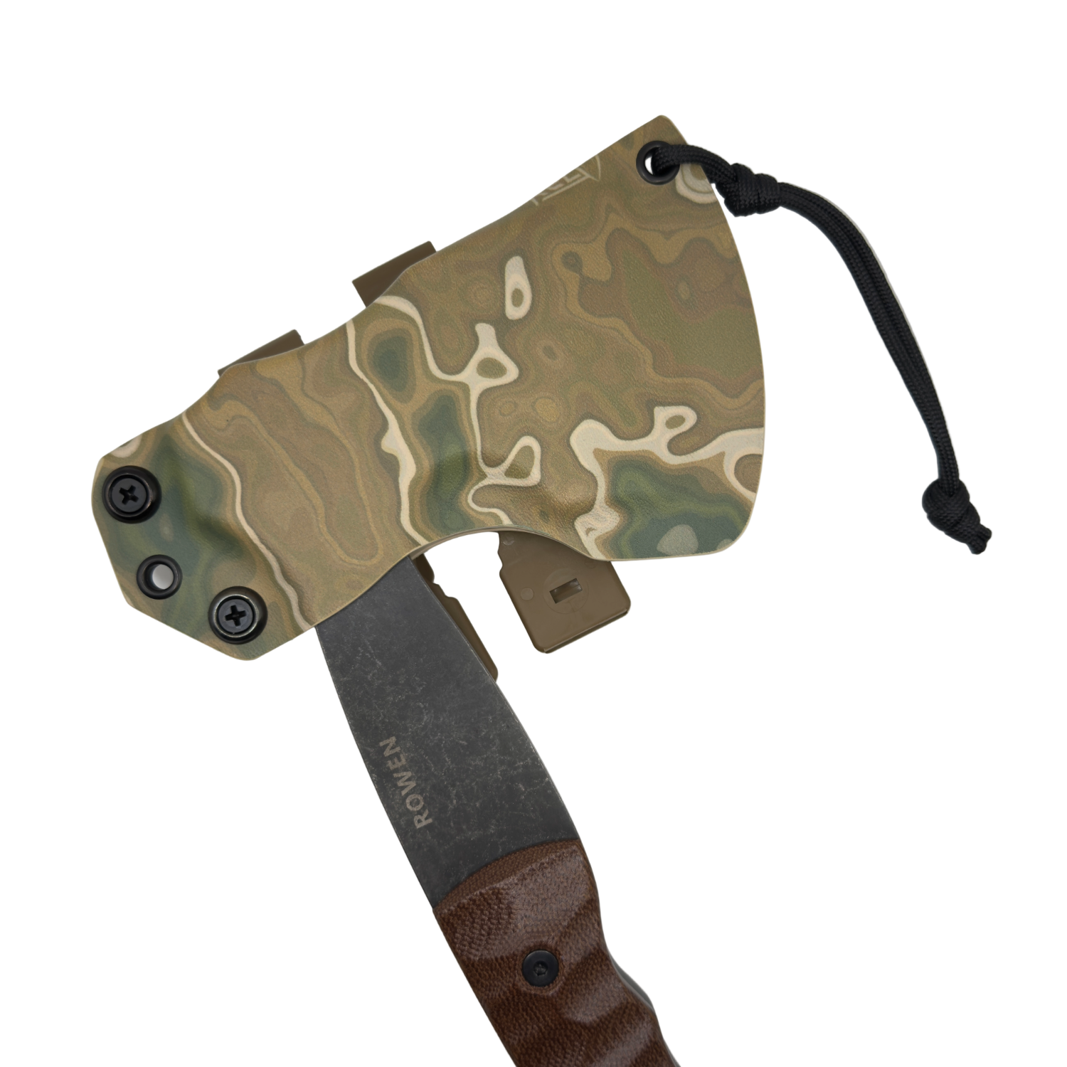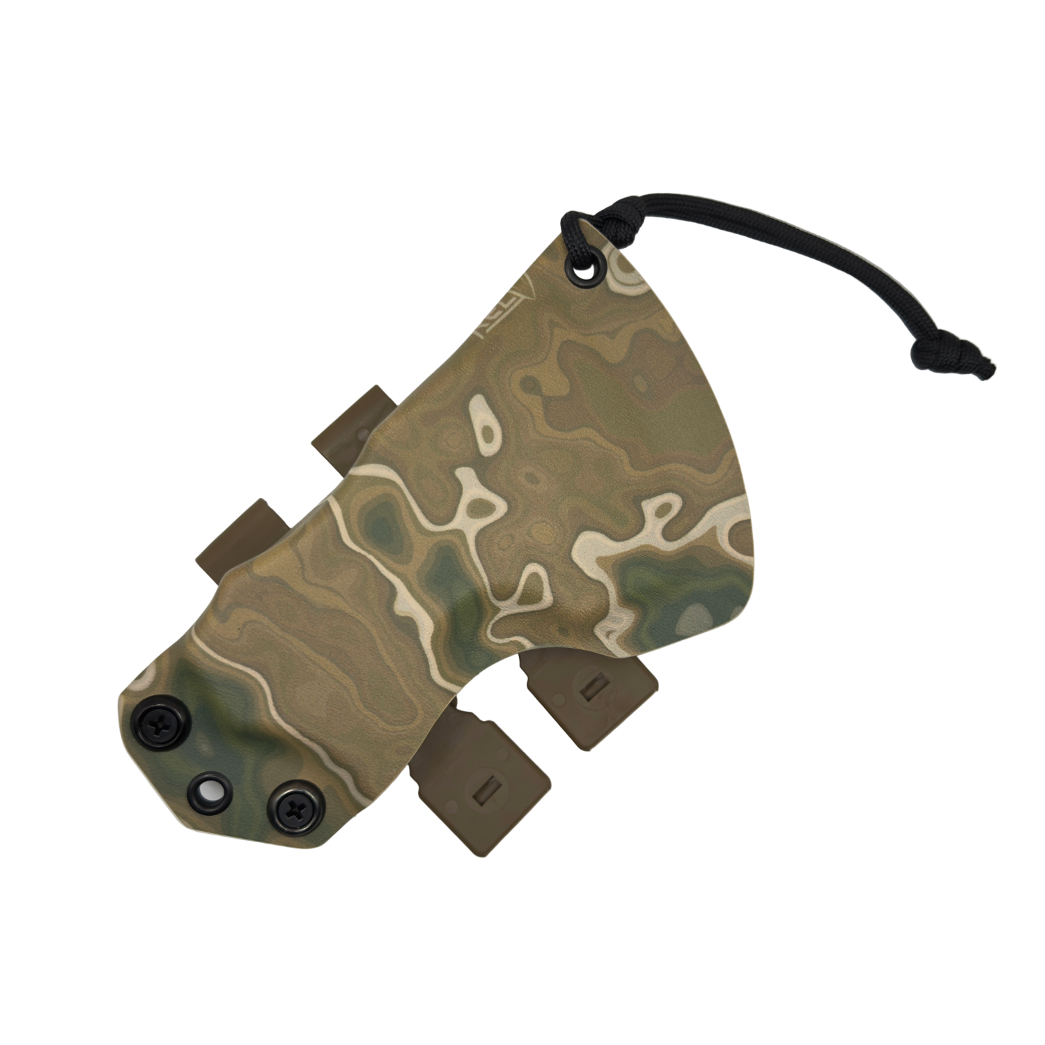 Stay Ready Outdoors now offers a custom Kydex sheath for the ESEE Gibson Axe, handcrafted by Surprise Holster Works in Oregon. Built from rugged 0.080 Kydex and designed for field use, this sheath combines secure retention with versatile mounting options for packs, belts, or MOLLE webbing. The exclusive RELV Camo Moab MK25 finish—available only through Stay Ready Outdoors—pairs perfectly with coyote tan gear while providing proven durability in harsh terrain.