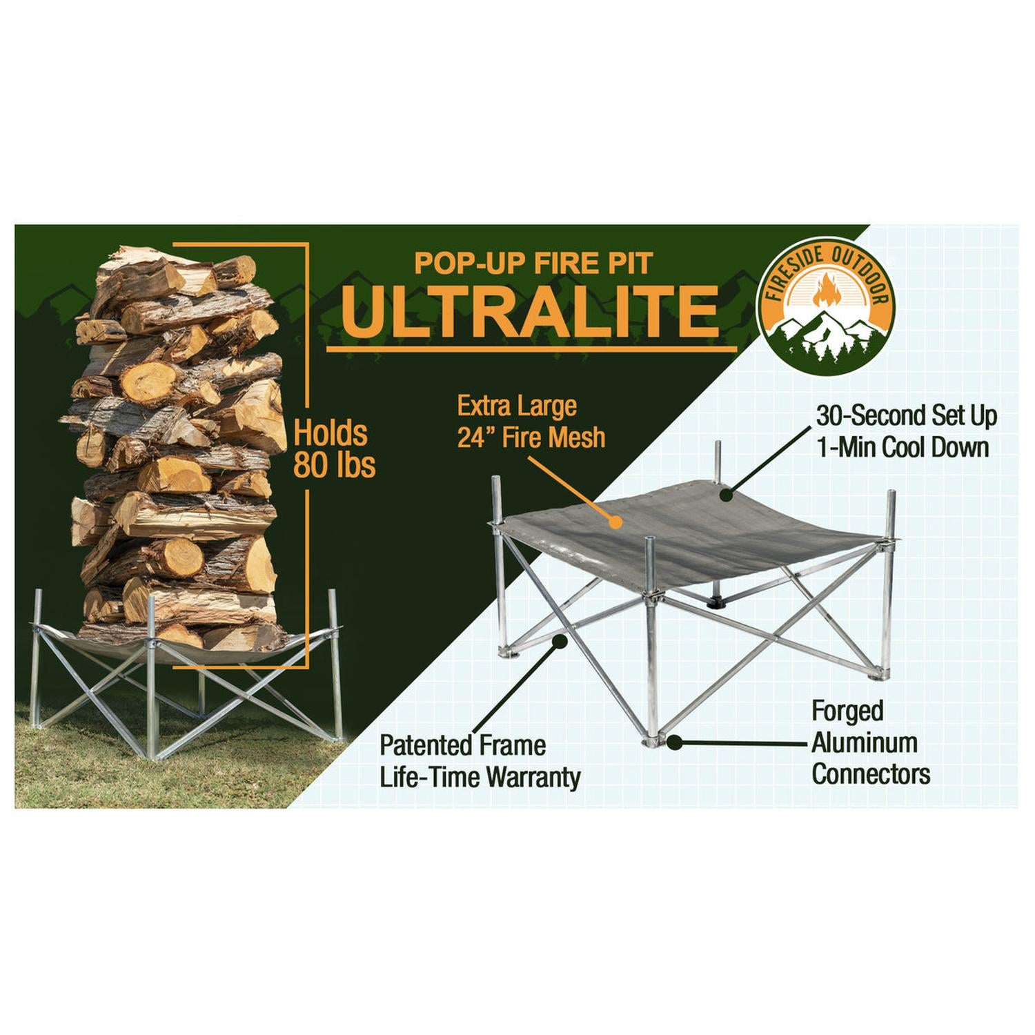 Fireside Outdoor Pop-Up Fire Pit 24" Ultra Lite