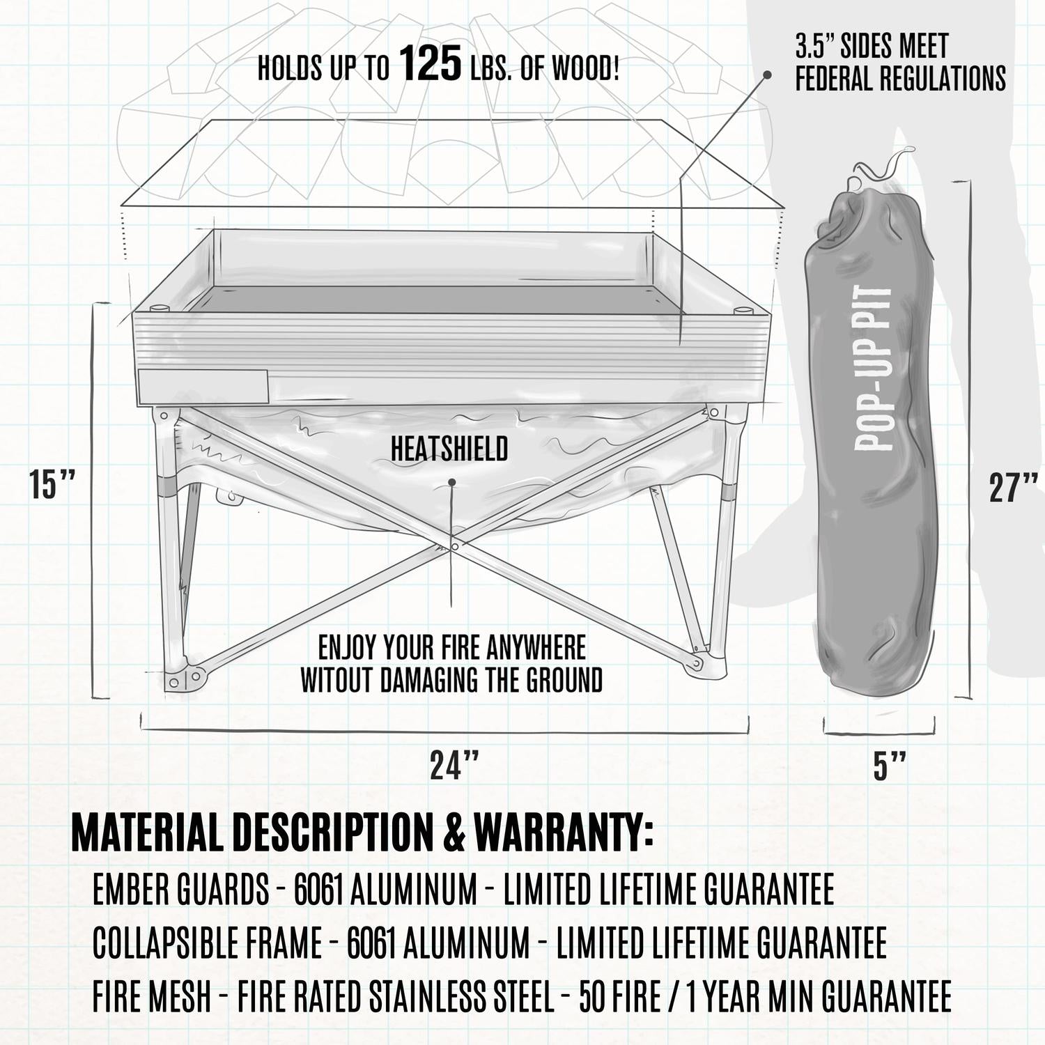 • Includes: Pop-Up Pit + Heat Shield + Carry Bag
