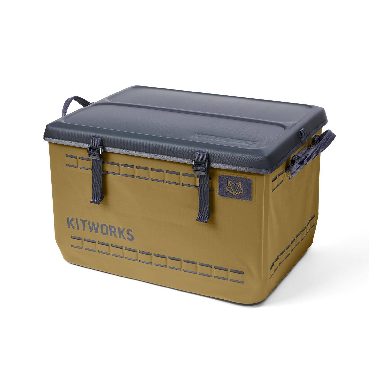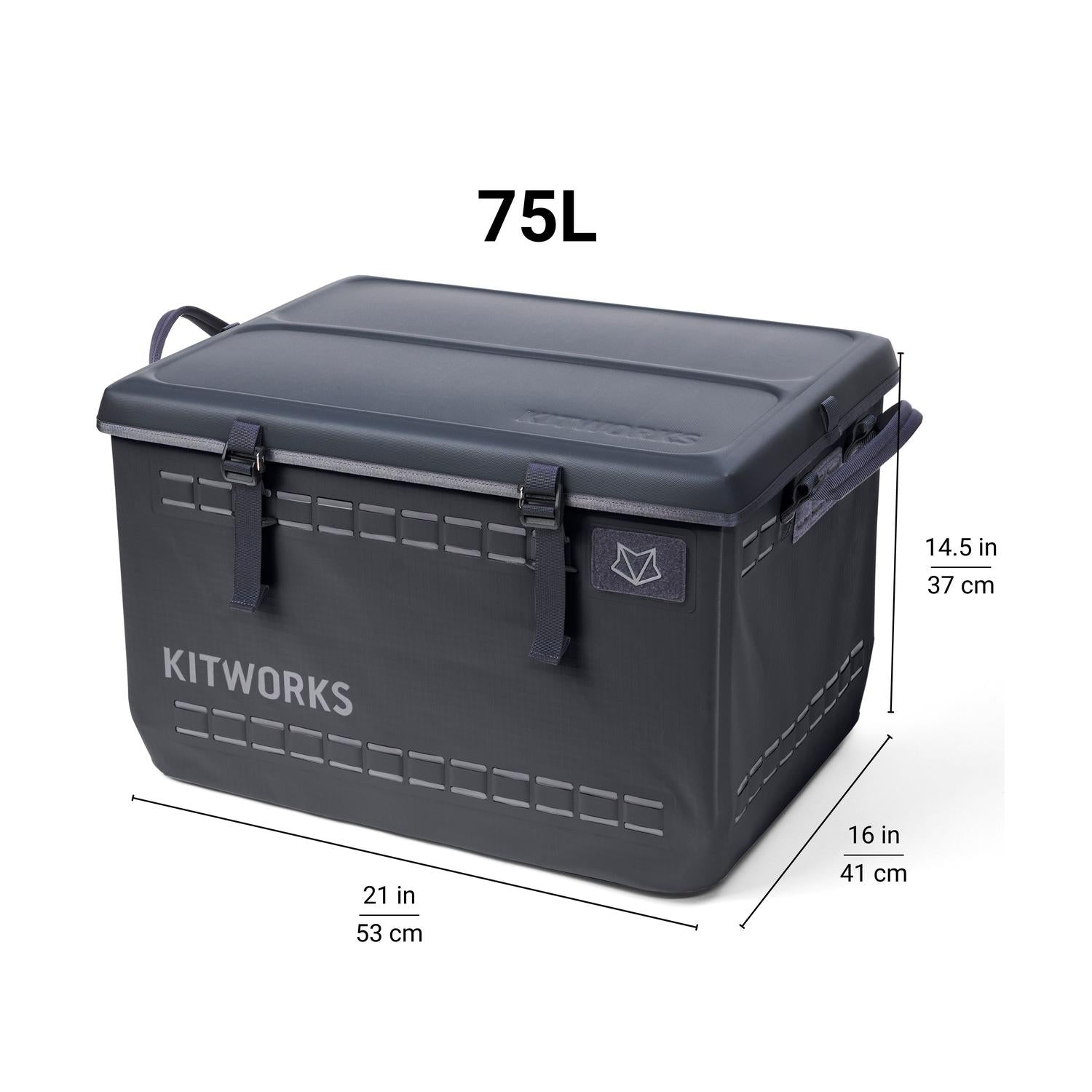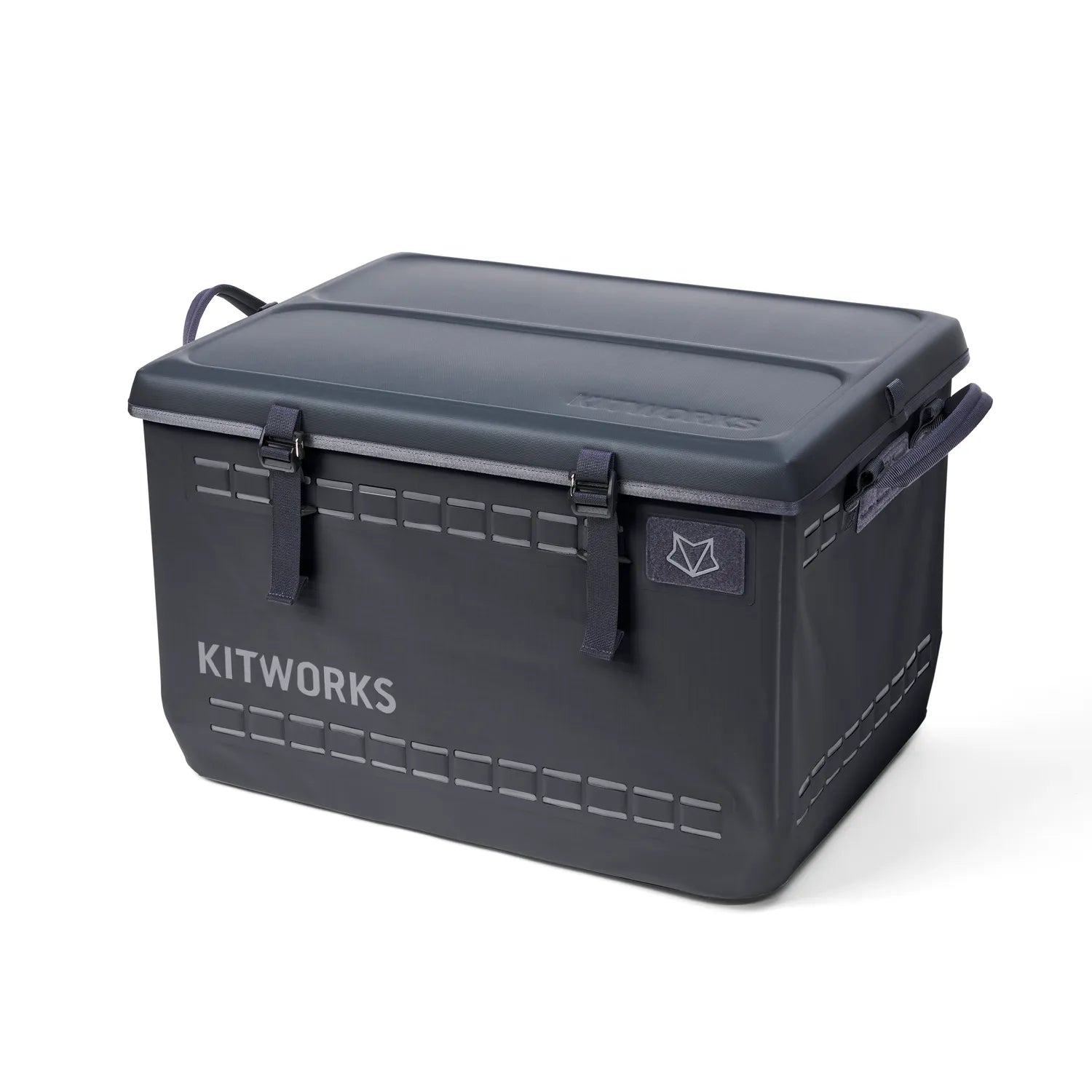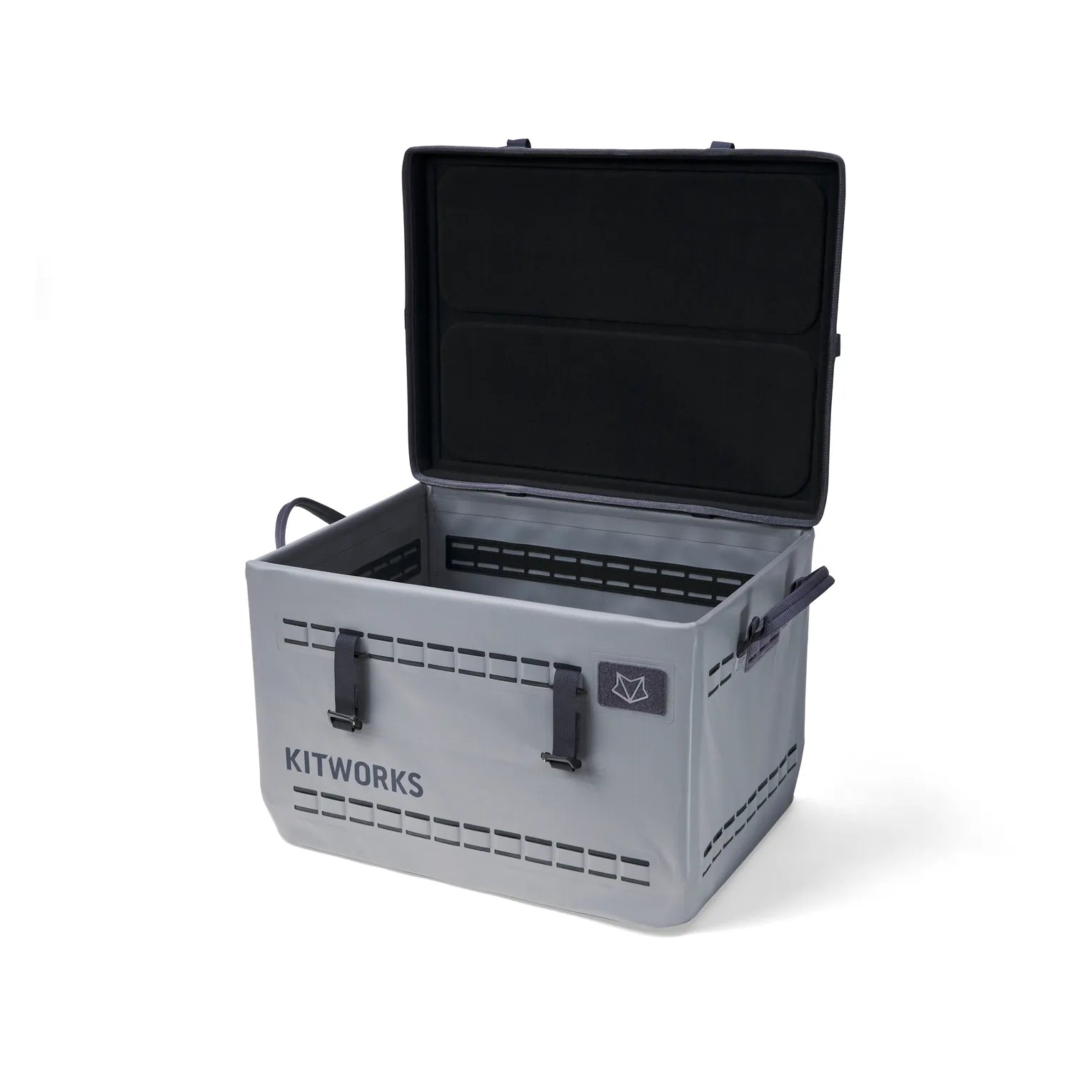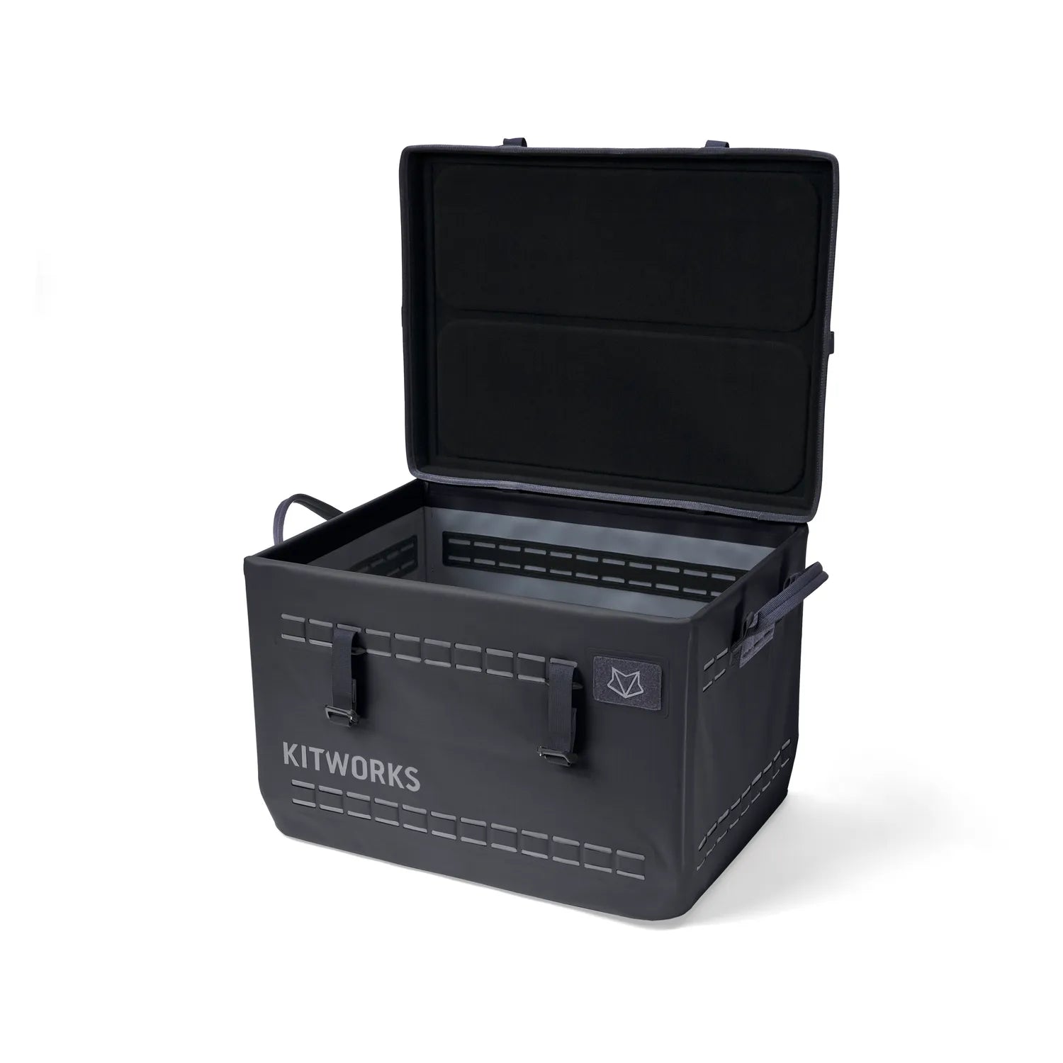 Called “a game-changing organization tool” by Men’s Journal, the Kitworks Gear Box 75L is built to organize, protect, and transport your gear anywhere. With a recycled 900D TPU-coated shell, RF welded seams, and honeycomb structural panels, it offers rugged durability, waterproof protection, and stackable strength up to 250 lbs. Internal and external accessory rails allow infinite customization with dividers, system pockets, MOLLE gear, and hook-backed organizers, making it the ultimate basecamp storage solution.