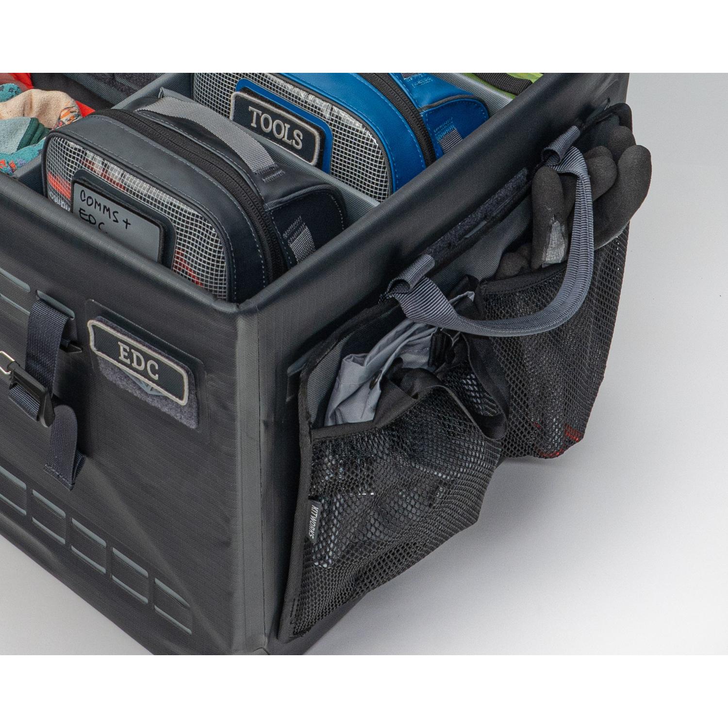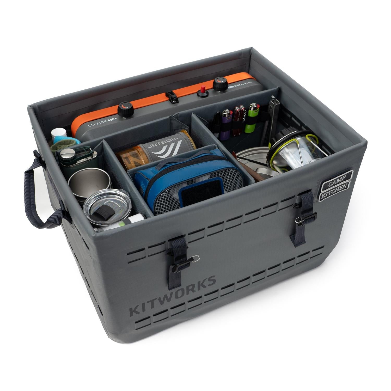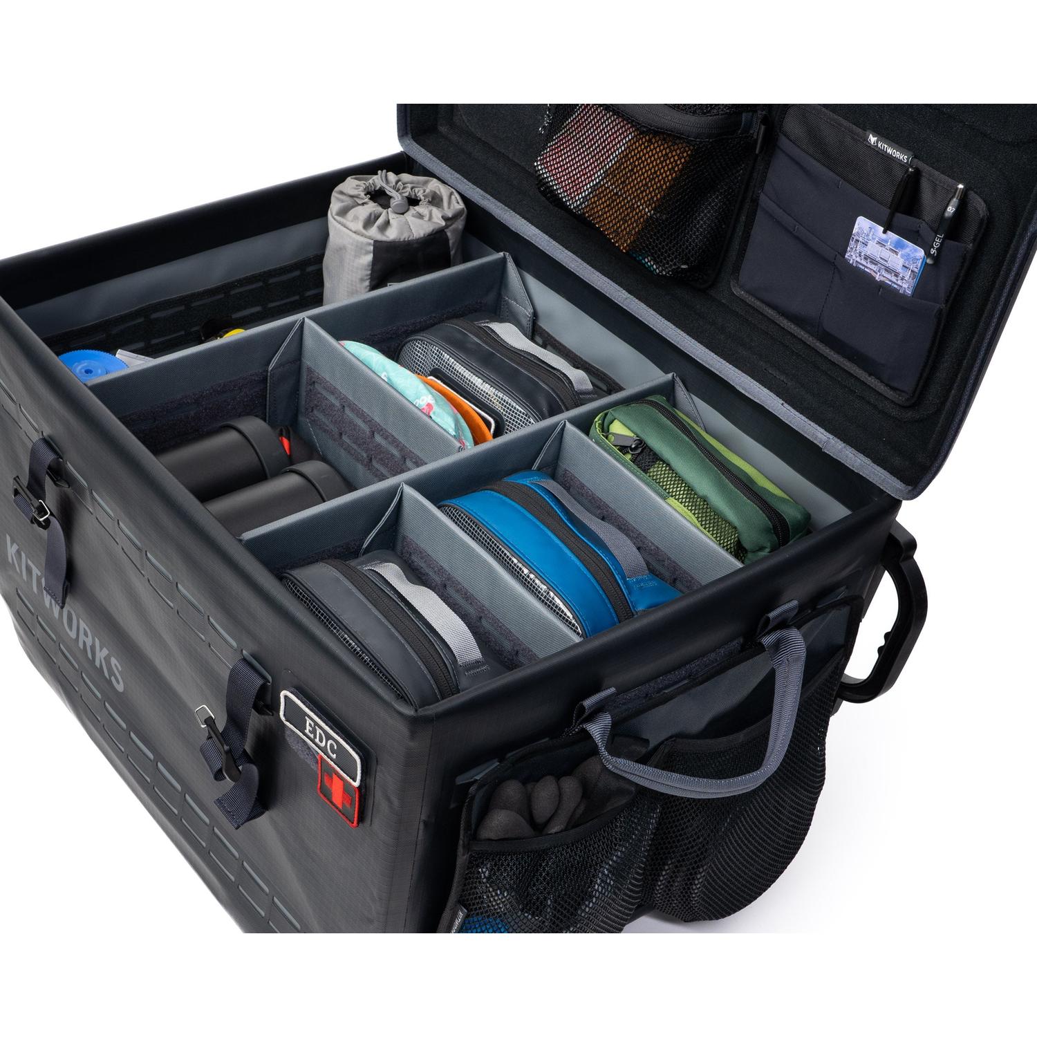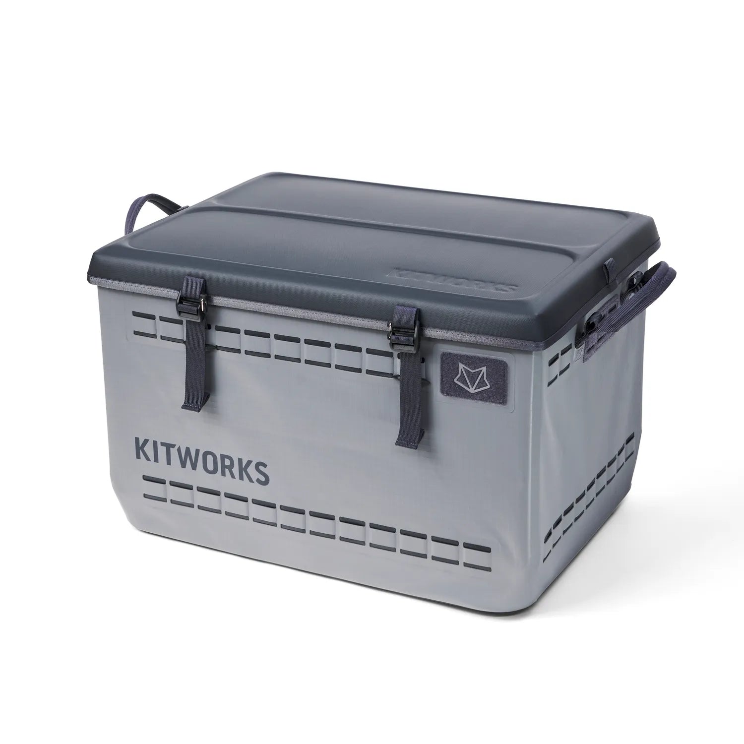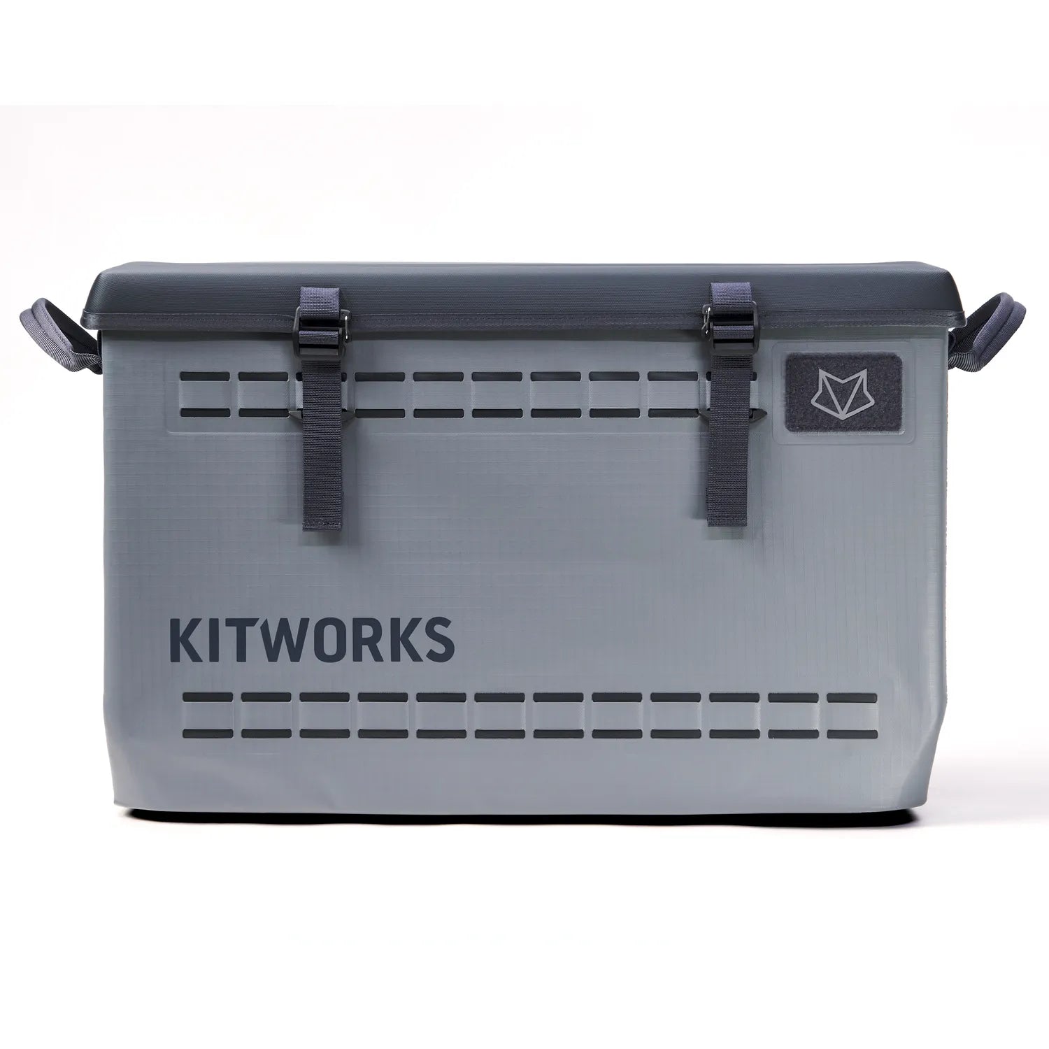 Called “a game-changing organization tool” by Men’s Journal, the Kitworks Gear Box 75L is built to organize, protect, and transport your gear anywhere. With a recycled 900D TPU-coated shell, RF welded seams, and honeycomb structural panels, it offers rugged durability, waterproof protection, and stackable strength up to 250 lbs. Internal and external accessory rails allow infinite customization with dividers, system pockets, MOLLE gear, and hook-backed organizers, making it the ultimate basecamp storage solution.