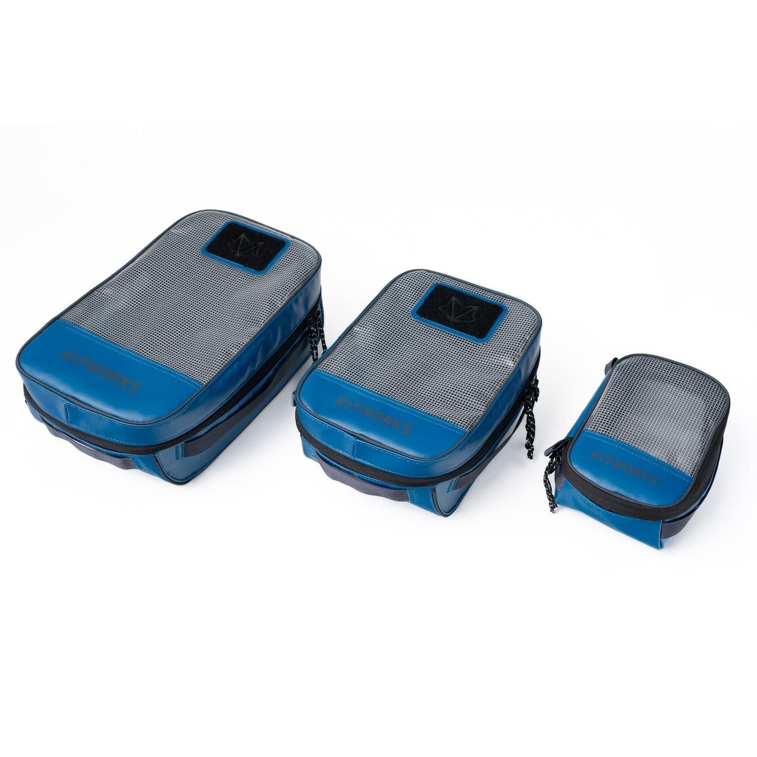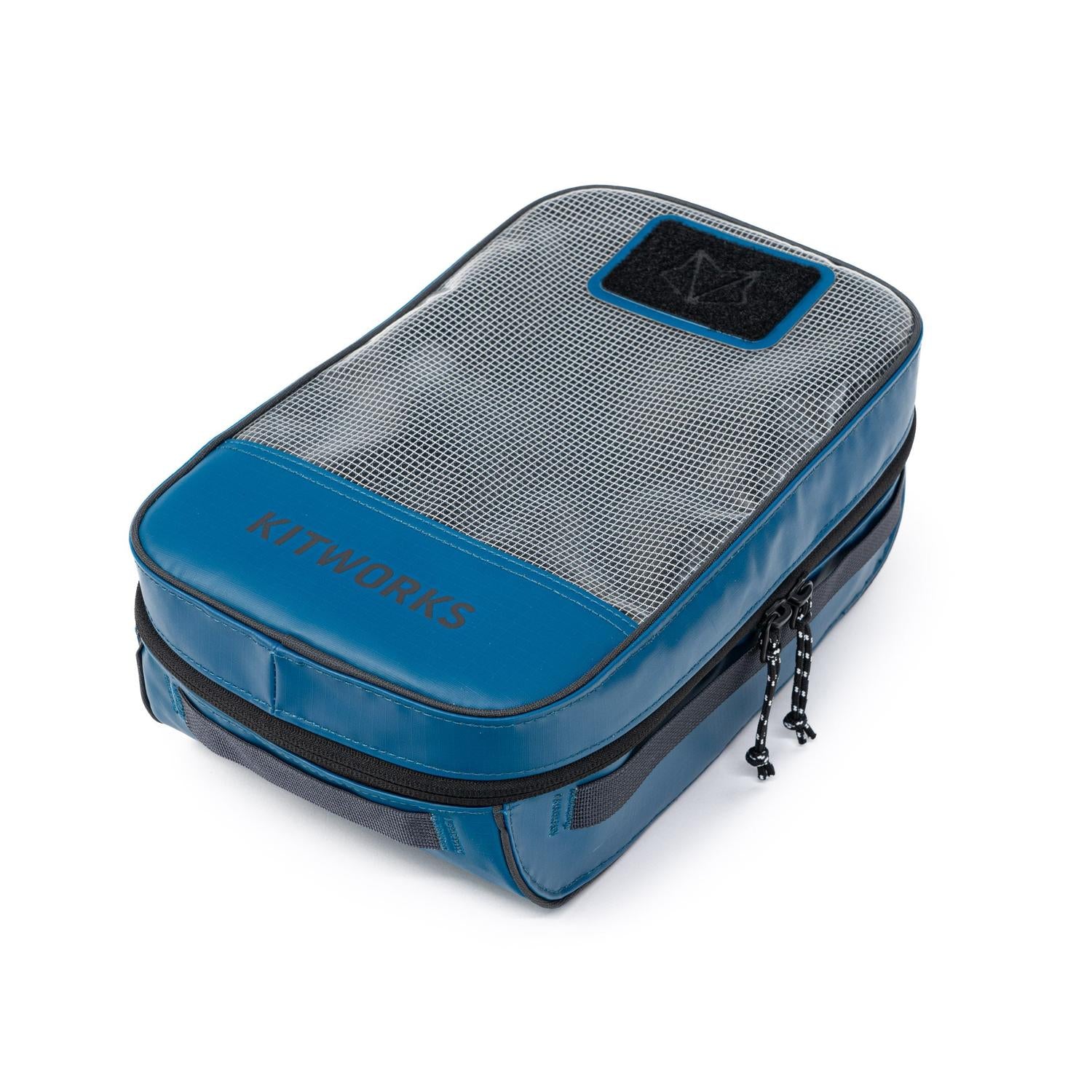 Kitworks Gear Cubes are designed to keep your kit organized across any adventure. Available in three sizes, these structured packing cubes protect and organize climbing gear, tools, first aid, and emergency supplies. Built with recycled TPU-laminated ripstop for durability and weather resistance, each cube nests seamlessly inside Gear Boxes, Totes, and Duffels. Clear mesh windows allow fast ID of contents, while internal pockets keep small items secure.