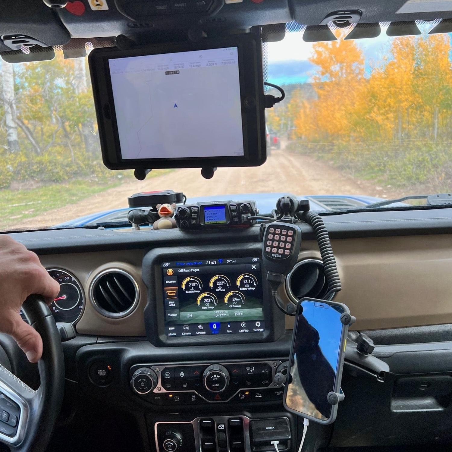 RAM Mount X-Grip has a clean and clever four leg design that sports great holding power without hiding your phone. This will the most useful accessory in your Jeep. Double socket arm has a socket at both ends that accommodates B Size 1" balls. RAM's socket technology allows for almost infinite adjustment to achieve the perfect viewing angle.